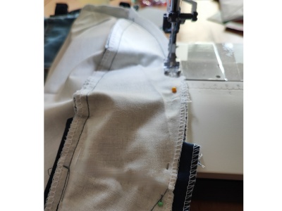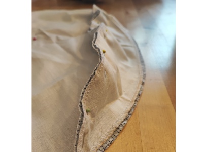 Tu peux maintenant surfiler tous les bords à l’aide d’une surjeteuse ou d’une machine à coudre (réglage point de croix).