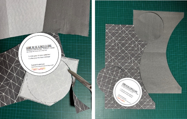 Dessiner sur les deux grands morceaux de tissu, à droite, à gauche et en bas, le surplus de couture de 1 cm sur la Vlieseline. Cela te facilitera la tâche pour coudre le fond !