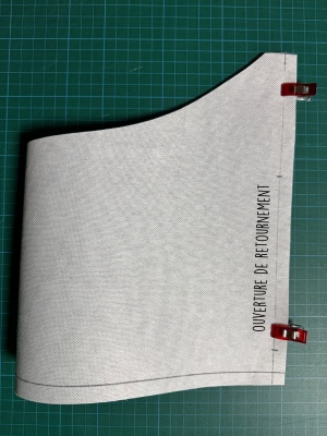 Tracer aussi le repère pour l’ouverture de retournement sur le tissu intérieur!