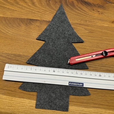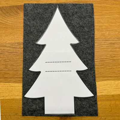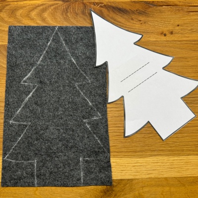Imprimez le patron, découpez le sapin et placez ensuite le modèle sur la feutrine.