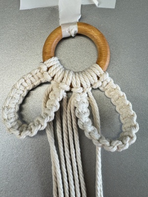 Une planche avec pince sur laquelle tu pourras fixer l‘anneau en bois te facilitera le travail sur tes projets de macramé en garantissantt plus de stabilité et de confort lors du nouage. Tu peux également fixer l’anneau en bois à la table à l’aide d’un ruban adhésif.